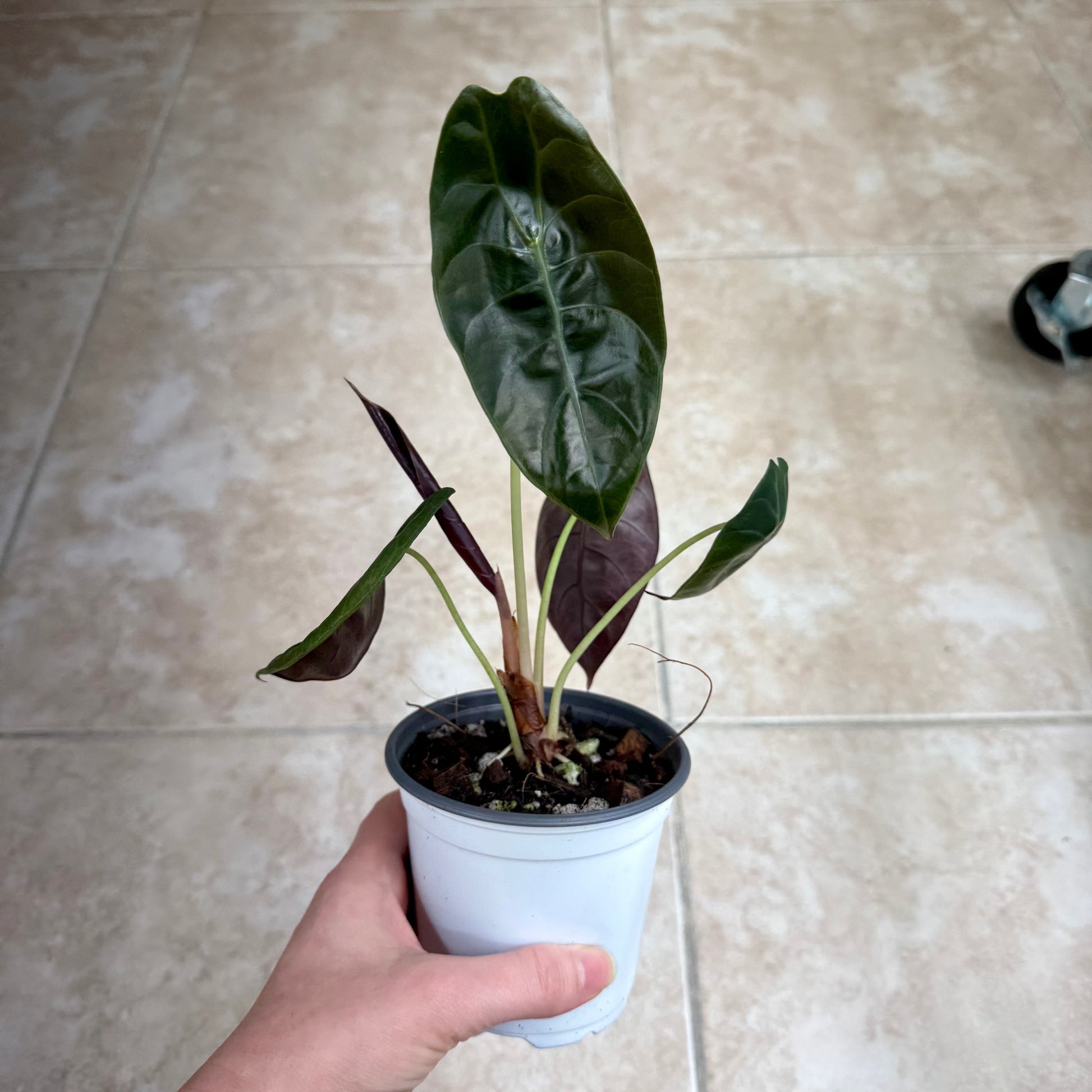 Your Alocasia arrives well-established in a 4" pot. Each plant is grown with care in our licensed Florida nursery to ensure it arrives healthy, well-rooted, and ready to thrive in your space. Provide bright, indirect light, steady warmth, and moderate humidity, and it will reward you with elegant, richly toned foliage—a living link to the early history of Alocasia hybridization.
